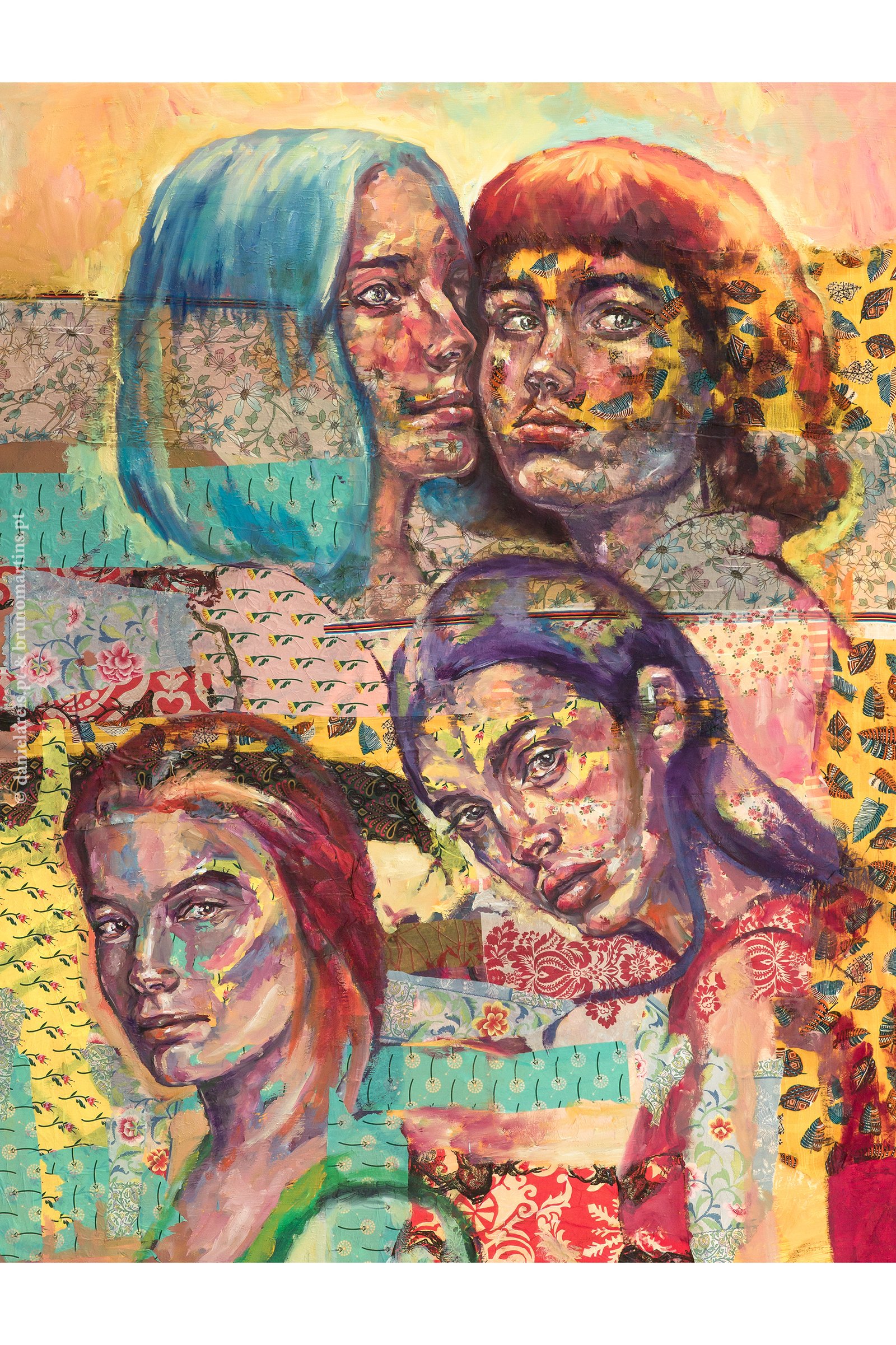 Nesta mostra, são apresentadas pinturas a óleo, pastel, aguarela e colagem, técnicas que a artista explora e combina numa entrega à sedução das cores e das texturas, revelando a pluralidade de um trabalho pictórico densamente elaborado e comprometido com a conexão — real e ficcionada — entre memória, identidade e imaginário.